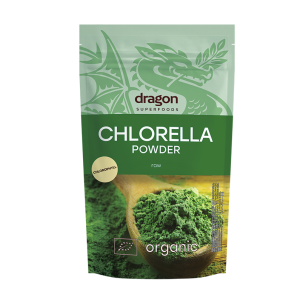 Dragon Superfoods Chlorella powder – 100% organic, rich in natural chlorophyll, supports liver function, detoxification, and digestion. Ideal for daily green smoothies.